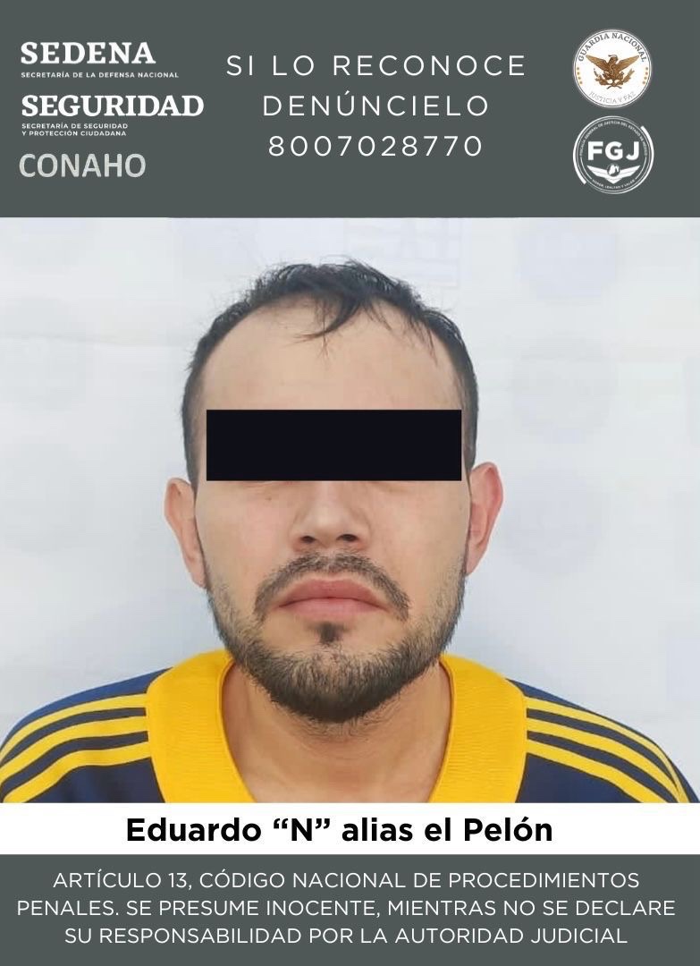 Esta Institución continúa con las investigaciones, a fin de establecer la posible intervención de Eduardo “N”, alias “El Pelón”, en otros hechos delictivos, no obstante, debe ser considerado inocente hasta que sea dictada una sentencia condenatoria en su contra.