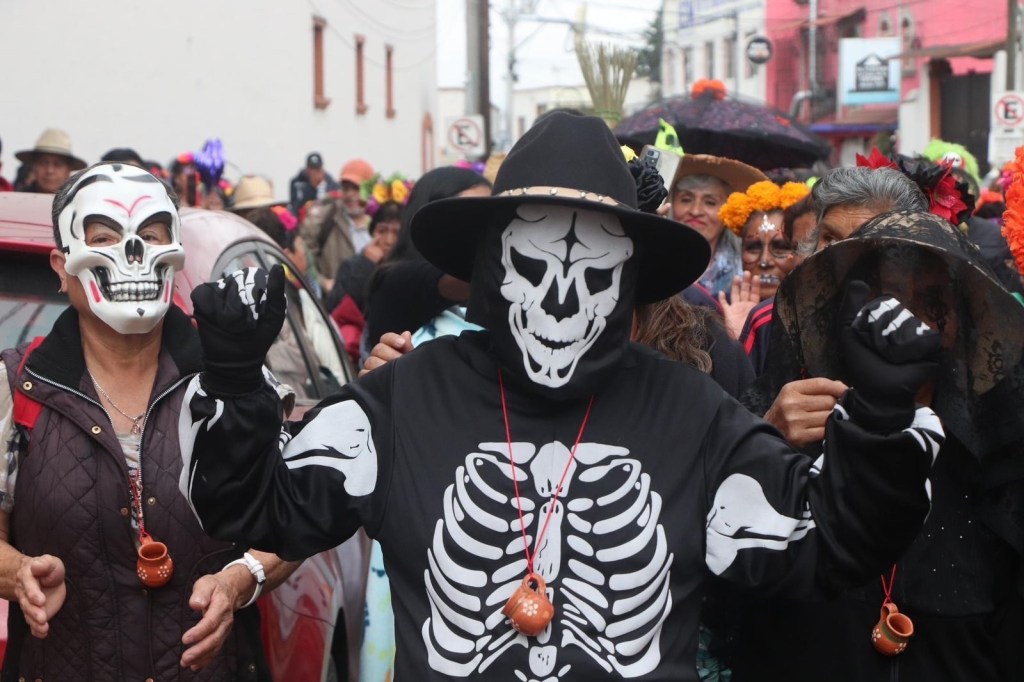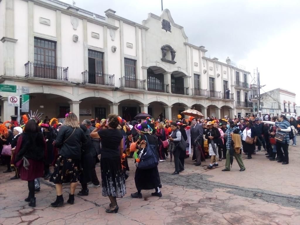 Durante el recorrido de catrines y catrinas, llevado a cabo en el primer cuadro de la cabecera municipal, destacó la imaginación y la creatividad de los participantes.