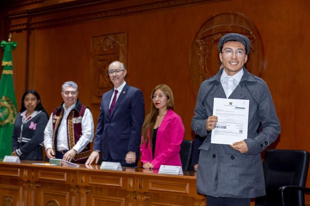 “Hoy les reconocemos a ustedes como una parte esencial de la comunidad universitaria, por lo que las y los invito a que continúen cultivando su curiosidad, exploren nuevas ideas y se atrevan a reflexionar profunda y críticamente sobre el mundo que nos rodea”, abundó.