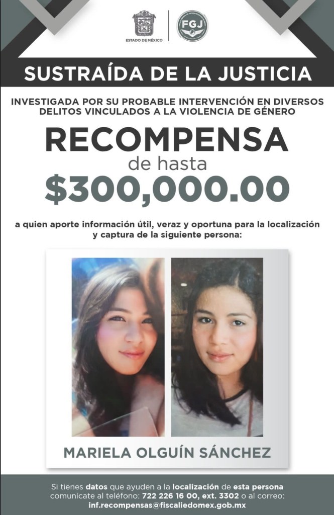 Con los datos de prueba aportados, el 26 de octubre pasado, la Autoridad Judicial concedió órdenes de aprehensión en contra de Carlos Javier “N” y Mariel “N”, quienes están sustraídos de la acción de la justicia, por lo que la Fiscalía General de Justicia del Estado de México en conjunto con la Comisión Nacional Antihomicidio de la Secretaría de Seguridad y Protección Ciudadana del Gobierno de México realizan acciones para su búsqueda, localización y detención, tanto en territorio nacional como en el extranjero.