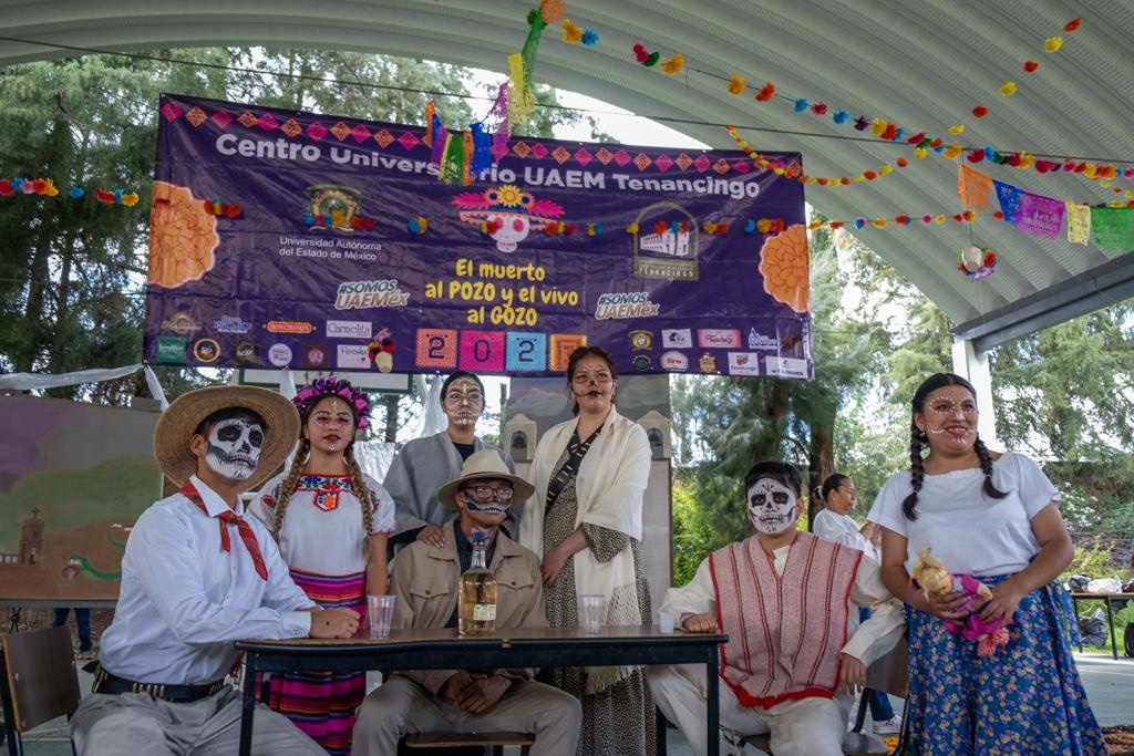 Tenancingo, Estado de México, 01 noviembre 2023.- Estudiantes, académicos y trabajadores administrativos del Centro Universitario Tenancingo, de la Universidad Autónoma del Estado de México (UAEMéx), participaron en la edición 2023 del Festival “El muerto al pozo y el vivo al gozo”, que tiene como propósito resaltar las tradiciones y costumbres alusivas al Día de Muertos.