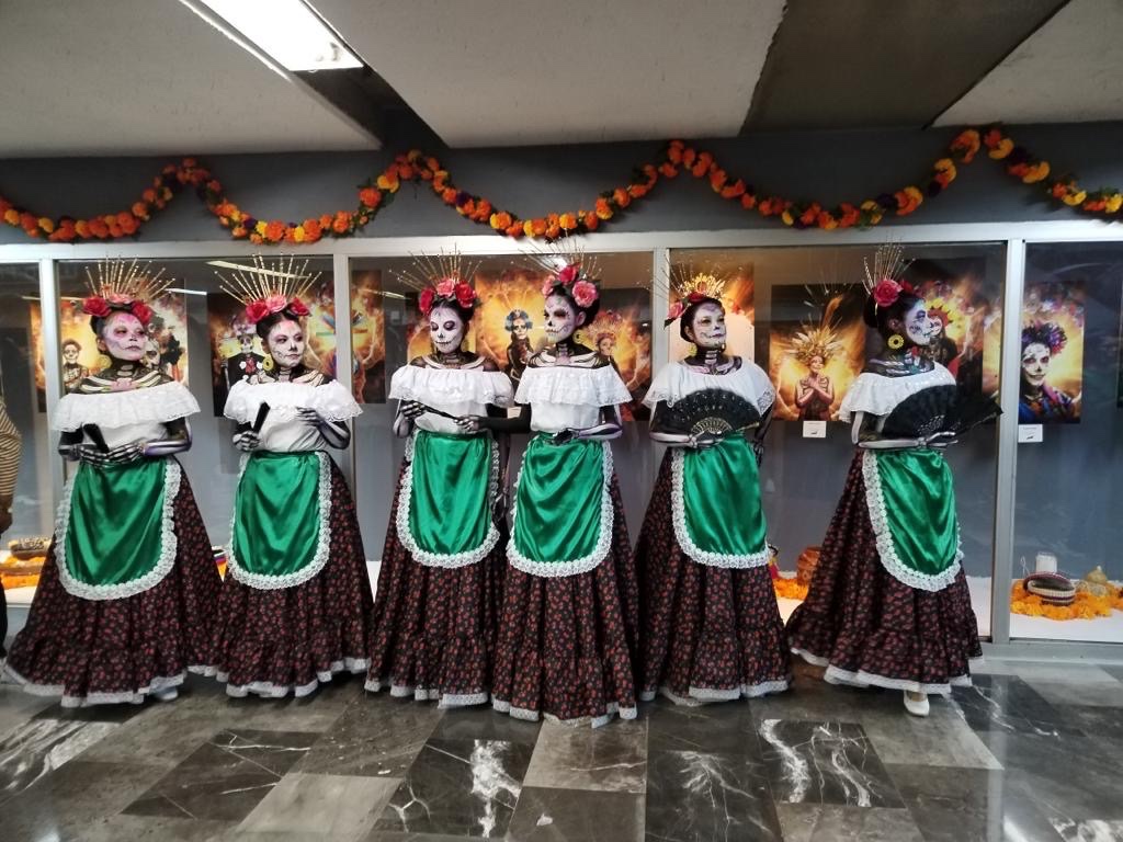 Con danza y coloridos atuendos, el Valet México Extraordinario y el Colectivo La Catrina Cuerpo y Color formaron parte de la inauguración de esta exposición, en colaboración con los locatarios del Mercado de Flores de Jamaica.
