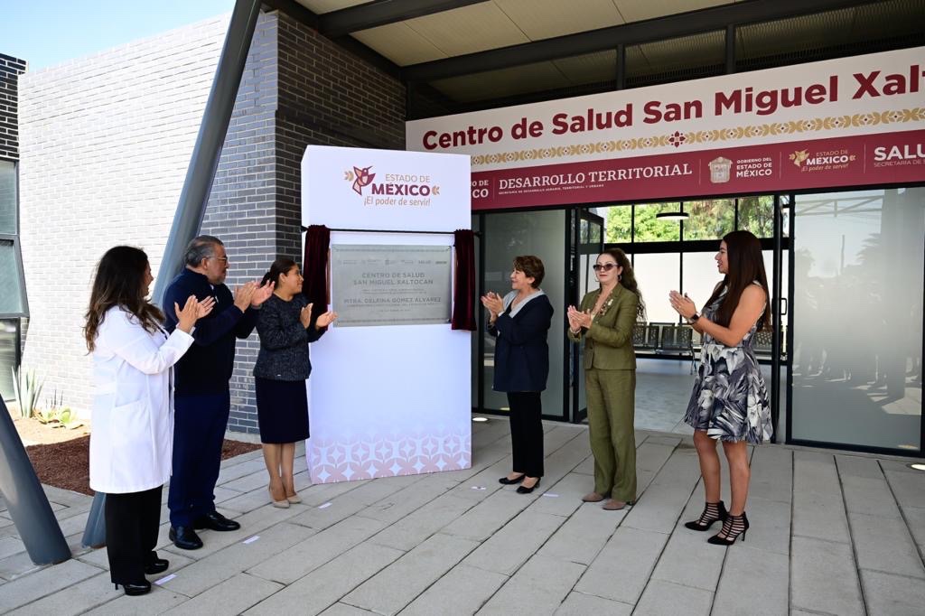 Nextlalpan, Estado de México.- La maestra Delfina Gómez Álvarez, gobernadora del Estado de México, inauguró el Centro de Salud “San Miguel Xaltocan”, que beneficiará a cuatro localidades del municipio de Nextlalpan y a las comunidades cercanas, con una atención médica renovada, que ofrecerá servicios de salud dignos, que fortalecerán la infraestructura médica del primer nivel de atención de la región.