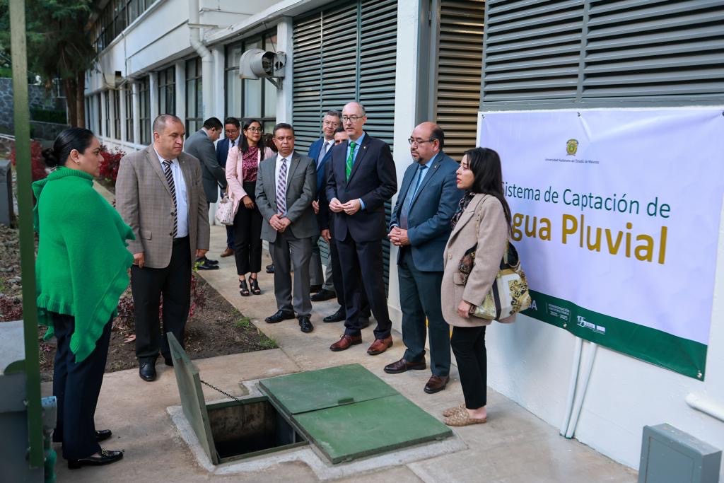 Previo a la firma del convenio, se llevó a cabo un recorrido por el Sistema de Captación de Agua Pluvial y el Laboratorio Nacional de Observación de la Tierra (LANOT), de la Facultad de Geografía, para conocer las labores que la UAEMéx realiza en materia medio ambiental.