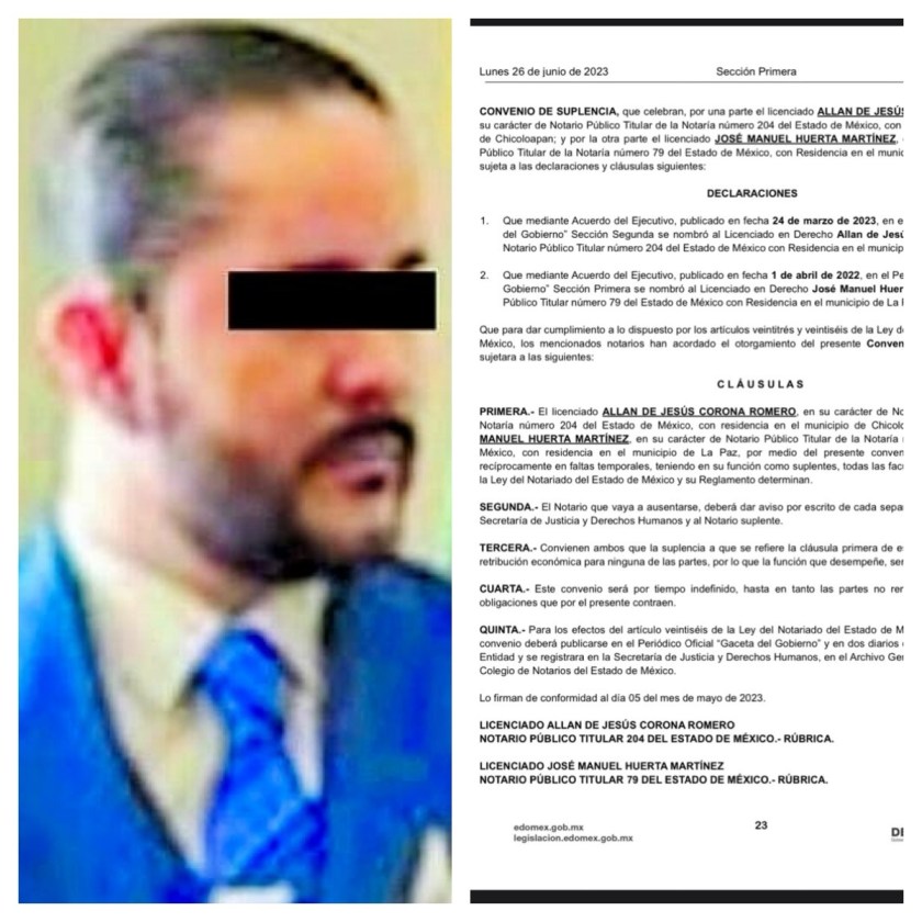 Toluca, Estado de México.- El Gobierno del Estado de México informa que Allan de Jesús Corona Romero, titular de la Notaría Pública 204, con residencia en Chicoloapan, no se encuentra en funciones desde el 17 de agosto de 2023.