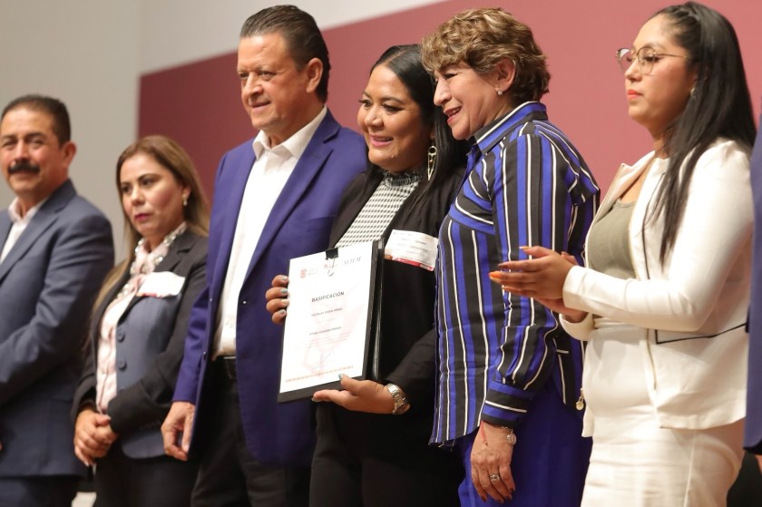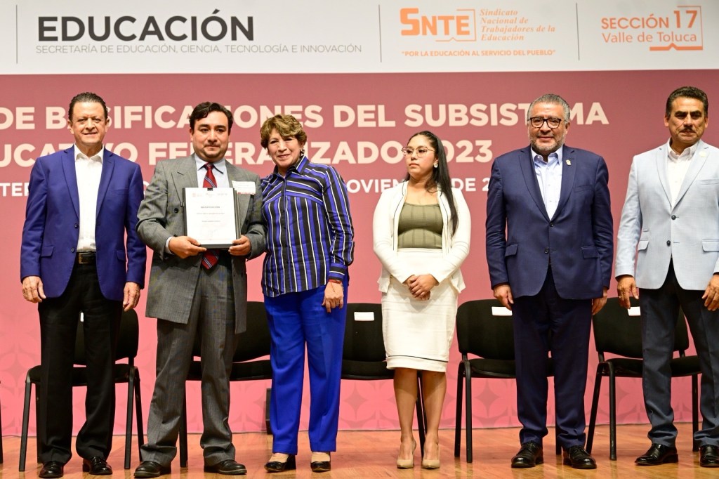 La gobernadora Delfina Gómez reconoció que, gracias a la labor del presidente de la República, Andrés Manuel López Obrador, realizada de manera conjunta con los tres órdenes de gobierno y sindicatos, se ha logrado dar certeza laboral a las y los maestros.