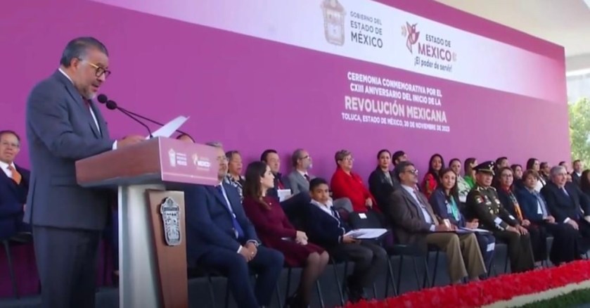 Quiero comenzar reconociendo de manera muy especial la presencia de la Gobernadora Constitucional del Estado de México, la Maestra Delfina Gómez Álvarez, es un honor acompañarla y tenerla como Gobernadora porque usted representa esos valores de sencillez y cercanía con el pueblo que inspiraron a nuestros héroes revolucionarios hace 113 años.