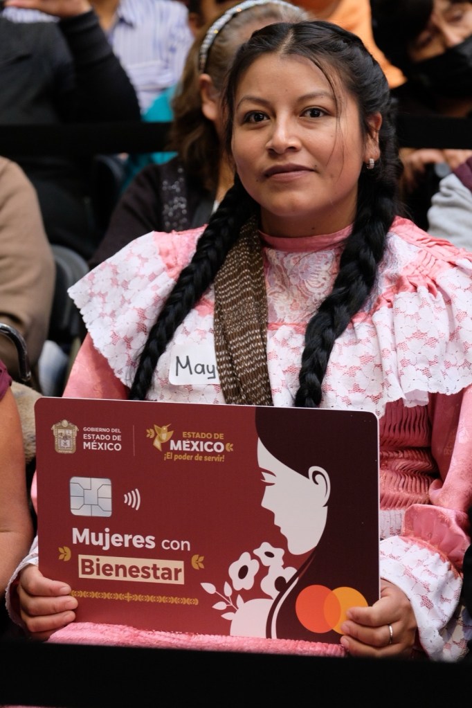 La maestra Delfina Gómez entregó de manera simbólica a 10 beneficiarias la nueva Tarjeta “Mujeres con Bienestar”, y destacó que, con la puesta en operación de este programa integral se cumple la promesa de caminar hacia la igualdad y el empoderamiento de las mexiquenses, demostrando que El Poder de Servir permite abrir puertas y dar solución al abandono que sufrió este sector por casi 100 años.