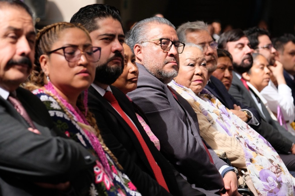 Así como Mónica Chávez Durán, secretaria de las Mujeres; Trinidad Franco Arpero, Oficial Mayor; Hilda Salazar Gil, secretaria de la Contraloría; Karina Labastida Sotelo, directora General del Sistema para el Desarrollo Integral de la Familia (DIFEM); Nayeli Gómez Castillo, coordinadora General de Comunicación Social, y Celeste Ramírez Hernández, Vocera de la Gubernatura.
