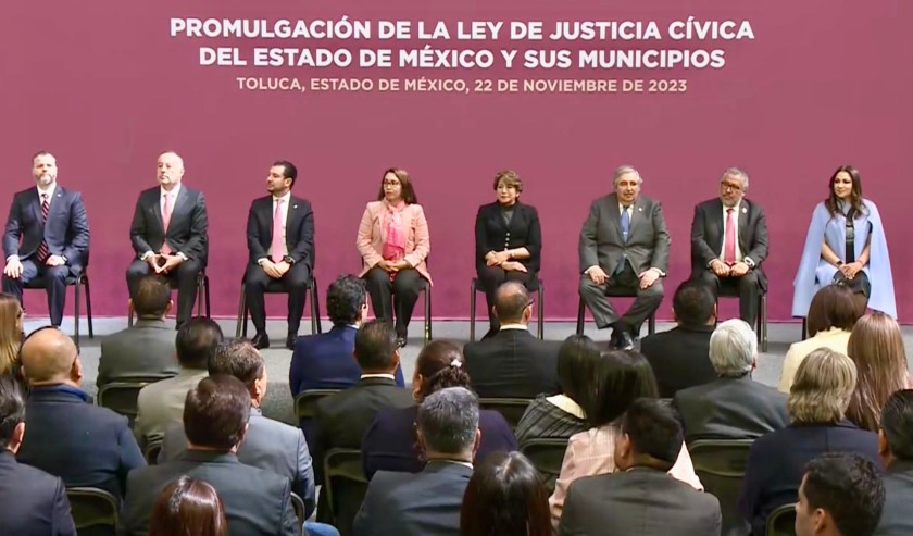 En el Estado de México, indicó, la ley se aplicará con firmeza, la Ley de Justicia Cívica trasladará artículos del Derecho penal al Derecho administrativo sancionador fortaleciendo el cumplimiento de normas y contribuyendo al adelgazamiento del Código Penal.