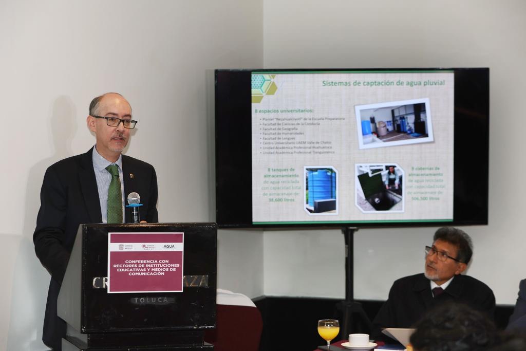 Puntualizó que esta casa de estudios pone a disposición de las autoridades estatales todos los recursos con que cuenta en la materia. “Las instituciones de educación superior como la Autónoma mexiquense nos vamos a sumar a este plan de un manejo más sostenible del agua, mediante acciones clave y contundentes”, manifestó.