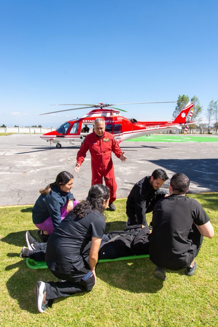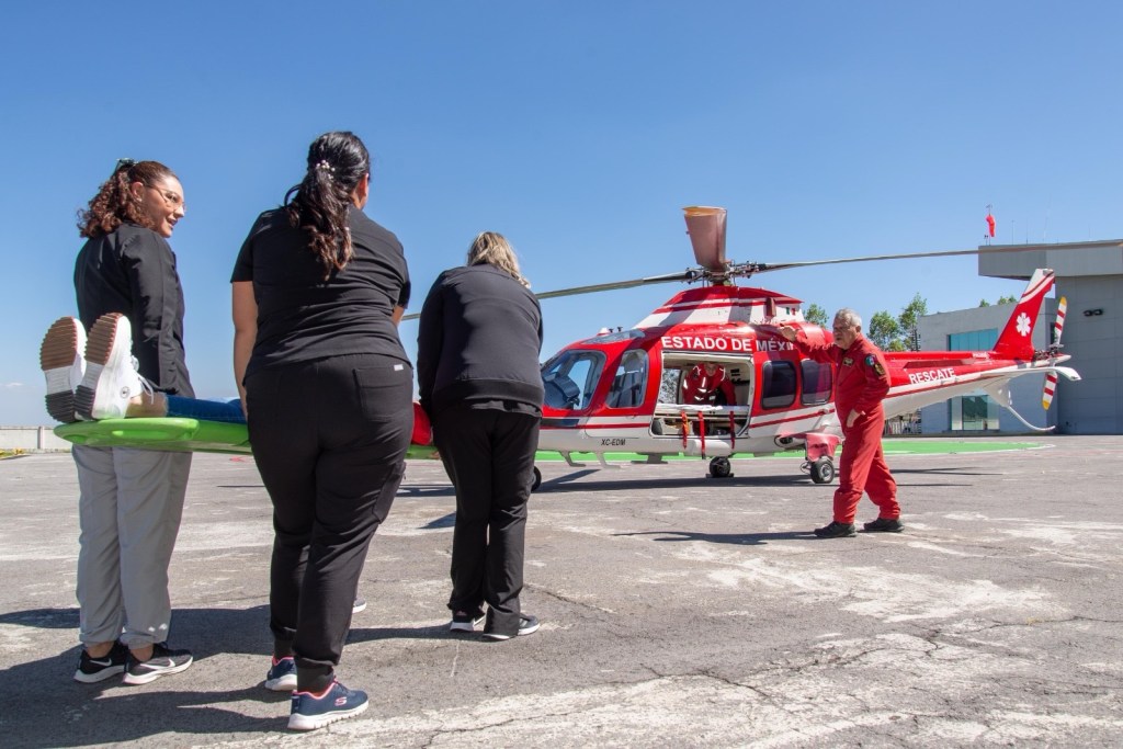 Toluca, Estado de México.- Con el objetivo de mantener las medidas de seguridad durante el proceso de evacuación aeromédica, la Unidad de Rescate Aéreo “Relámpagos”, del Gobierno del Estado de México, capacitó a médicos resientes en cuidados críticos en obstetricia de diferentes instituciones de salud.