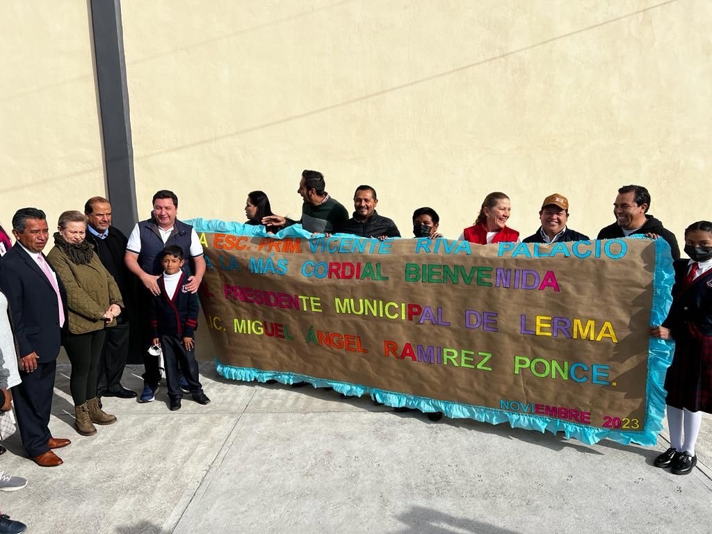 El alcalde Miguel Ángel Ramírez Ponce colocó la primera piedra del arcotecho del Conalep Lerma e hizo la entrega de varias obras de infraestructura en la primaria «Vicente Riva Palacio” ubicada en la colonia Guadalupe La Ciénega de la cabecera municipal.