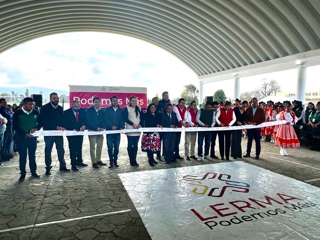 El presidente municipal de Lerma, Miguel Ángel Ramírez Ponce, realizó la entrega oficial del arcotecho del CECYTEM plantel Lerma, ubicado en San Nicolás Peralta, lo que permitirá a sus más de 200 alumnos realizar actividades cívicas, deportivas y culturales sin importar las condiciones climáticas.