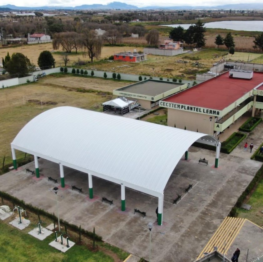 Destacó que con el nuevo arcotecho los más de 200 estudiantes del CECYTEM Lerma podrán llevar a cabo actividades cívicas, deportivas y culturales independientemente de las condiciones climáticas.