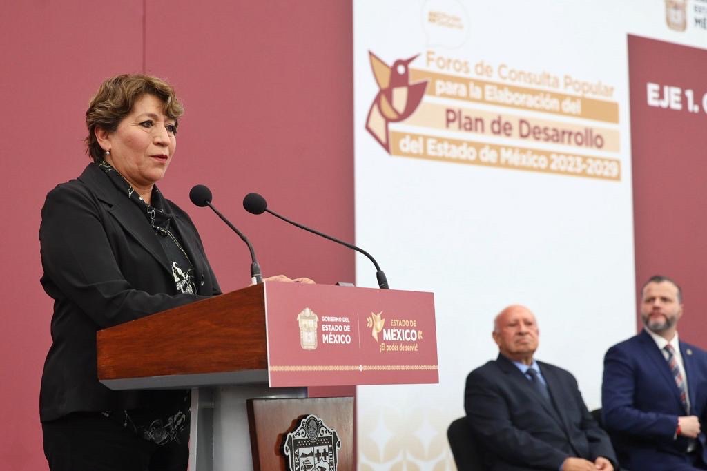 Toluca, Estado de México.- La gobernadora del Estado de México, Delfina Gómez Álvarez, inauguró los Foros de Consulta Popular para la elaboración del Plan de Desarrollo del Estado de México 2023-2029, el cual busca ser el reflejo de cada propuesta de las y los mexiquenses para lograr la transformación de la entidad.