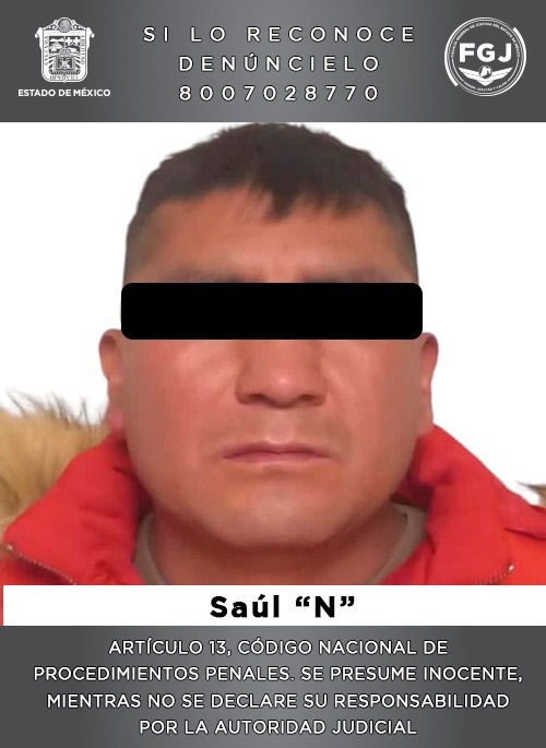 Toluca, Estado de México, 08 enero 2024.- El día de ayer, elementos de la Fiscalía General de Justicia del Estado de México, en coordinación con la Secretaría de Seguridad y Protección Ciudadana del Gobierno de México (SSPC), a través de la Comisión Nacional Antihomicidio (CONAHO), detuvieron y cumplimentaron, en el municipio de Zinacantepec, orden de aprehensión en contra de Saúl «N», por su probable intervención en el hecho delictivo de secuestro exprés, hechos acontecidos en agravio de la víctima identificada con iniciales O.E.R.C., el 12 de abril del 2023 y por los cuales se solicitó y obtuvo orden de aprehensión en contra de siete personas, incluyendo al entonces presidente municipal de Toluca, Raymundo “N”.