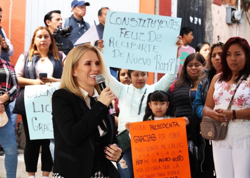 · La presidenta municipal, Romina Contreras, entregó la repavimentación con concreto hidráulico de 5 calles de las localidades de Ampliación Palo Solo, Constituyentes de 1917, Magdalena Chichicaspa, Tierra y Libertad, y el Segundo y Tercer Cuartel de los Barrios de San Miguel y Santiago.