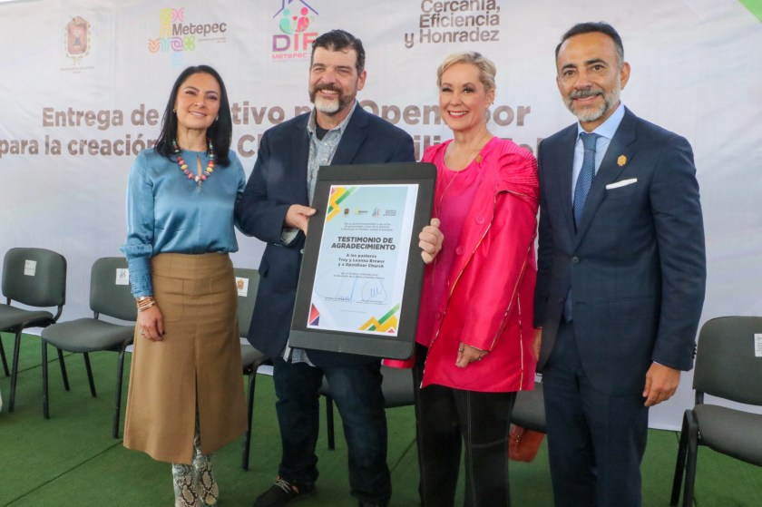 En las instalaciones del Jardín de Niños “Luisa Isabel Campos”, la organización Open Doors, encabezada por el ministro Troy Brewer y su esposa Leanna Brewer, entregaron un donativo de 80 mil dólares al Sistema para el Desarrollo Integral de la Familia Metepec, para la creación de la primera Clínica “Familias Felices”, para apoyar, entre otras tareas, a dar espacio a menores que sufren maltrato y violencia, atender a quien está en situación o riesgo de calle y otorgar un sistema integral psicológico.