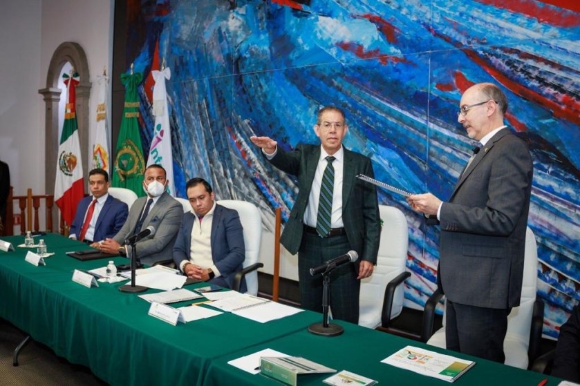 · El rector de la Universidad Autónoma del Estado de México, Carlos Eduardo Barrera Díaz, presentó el informe correspondiente al periodo 2023 del Comité de Registro de Testigos Sociales del Estado de México y tomó protesta al presidente entrante para el ejercicio 2024, José Martínez Vilchis.