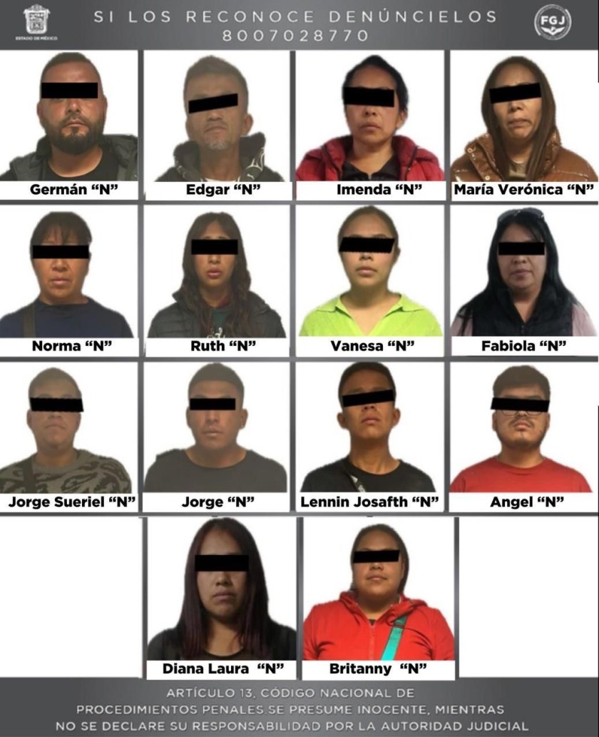 Estas acciones se enmarcan en la estrategia que llevan a cabo la Fiscalía estatal en coordinación con las instituciones que integran la Mesa de Coordinación para la Construcción de la Paz que encabeza la Gobernadora del Estado de México, Delfina Gómez Álvarez, para combatir la extorsión cometida por grupos criminales en agravio de comerciantes de pollo, huevo y otros productos de consumo diario.Las acciones operativas de ese día derivaron en el cumplimiento de órdenes de aprehensión contra Germán “N” y Diana Laura “N”, así como la captura de 12 personas más presuntamente involucradas con las extorsiones referidas.