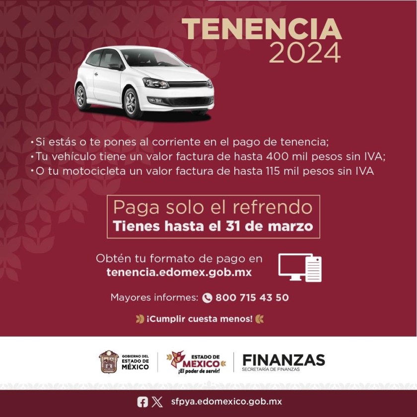 La Secretaría de Finanzas, dirigida por Paulina Moreno García, detalla que para gozar de este beneficio, los contribuyentes deben estar o ponerse al corriente en el pago de tenencias. Para ello, deberán ingresar al portal tenencia.edomex.gob.mx para generar su formato de pago.