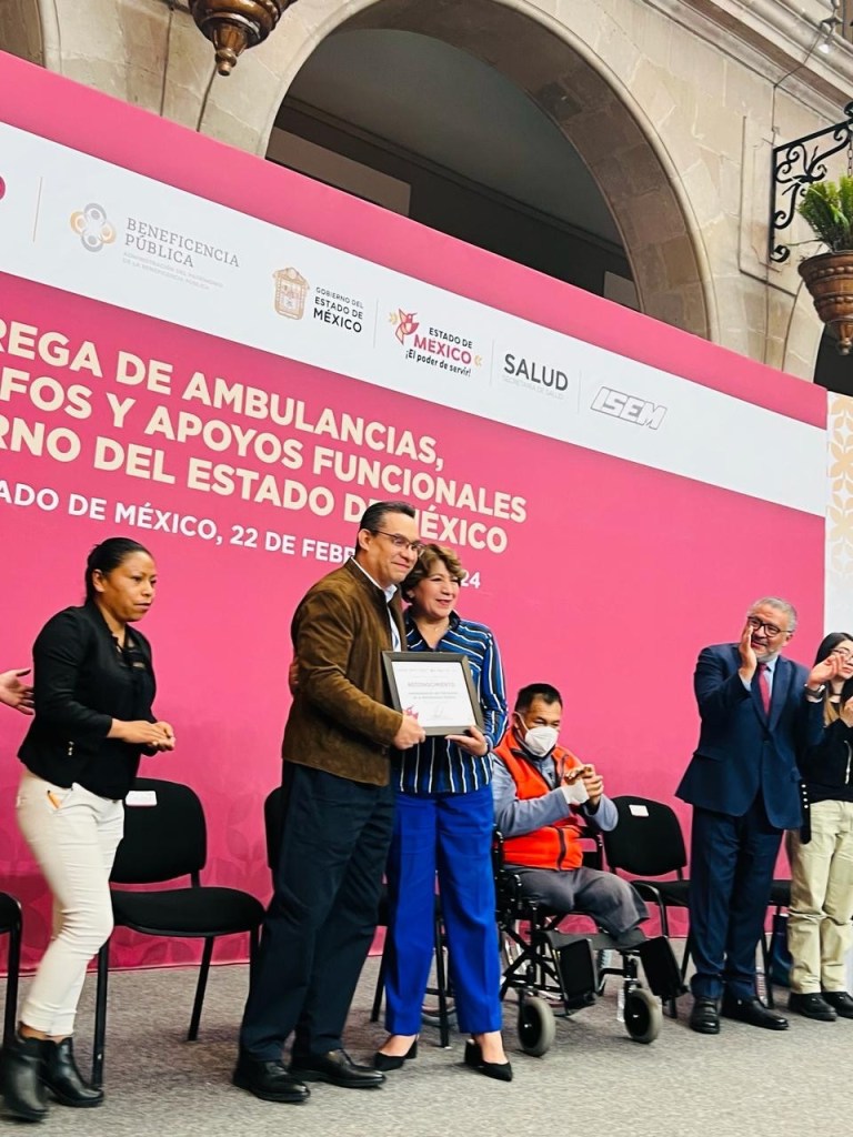 - Hoy nos convocan cuatro acciones contundentes a favor del Estado de México: La entrega de cientos de insumos de salud a la población; La actualización de procesadores de implante coclear; La renovación de equipos de mastografía y La modernización de ambulancias.