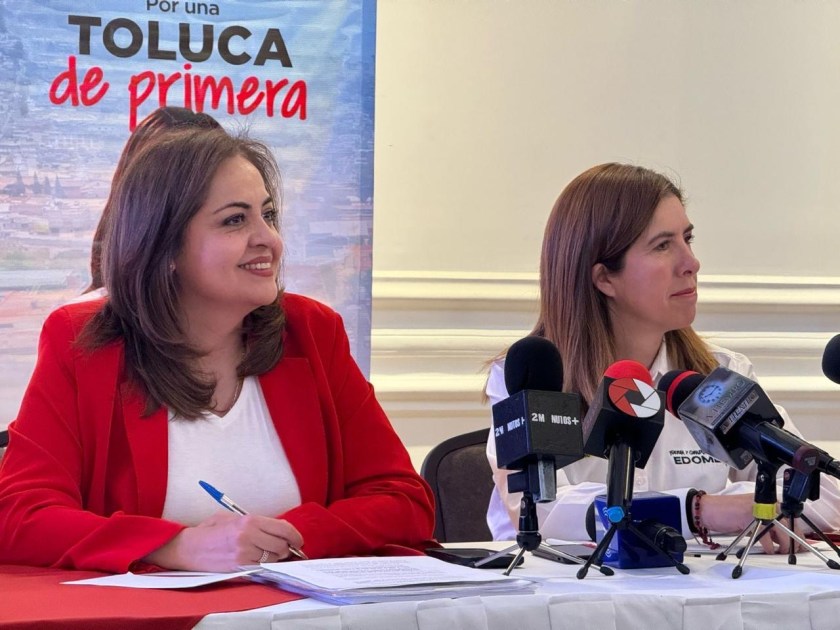 En la conferencia estuvo acompañada de la presidenta estatal del PRI, Ana Lilia Herrera, quien llamó a la ciudadanía a votar por los candidatos de Fuerza y Corazón por Edoméx.
