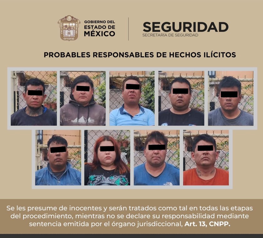 Por no acreditar la legal posesión de la unidad de carga, los oficiales detuvieron a Daniel “N” de 32 años, Jair “N”, de 28 años, Kevin “N” de 26 años, Alejandro “N” de 34 años, Irvin “N” de 36 años, Ramón “N” de 37 años, Daniel “N” de 29 años, José “N” de 31 años y María “N” de 21 años. Acorde a las indagatorias, es posible que se dediquen a desmantelar vehículos de carga, por lo que se extenderán las averiguaciones.