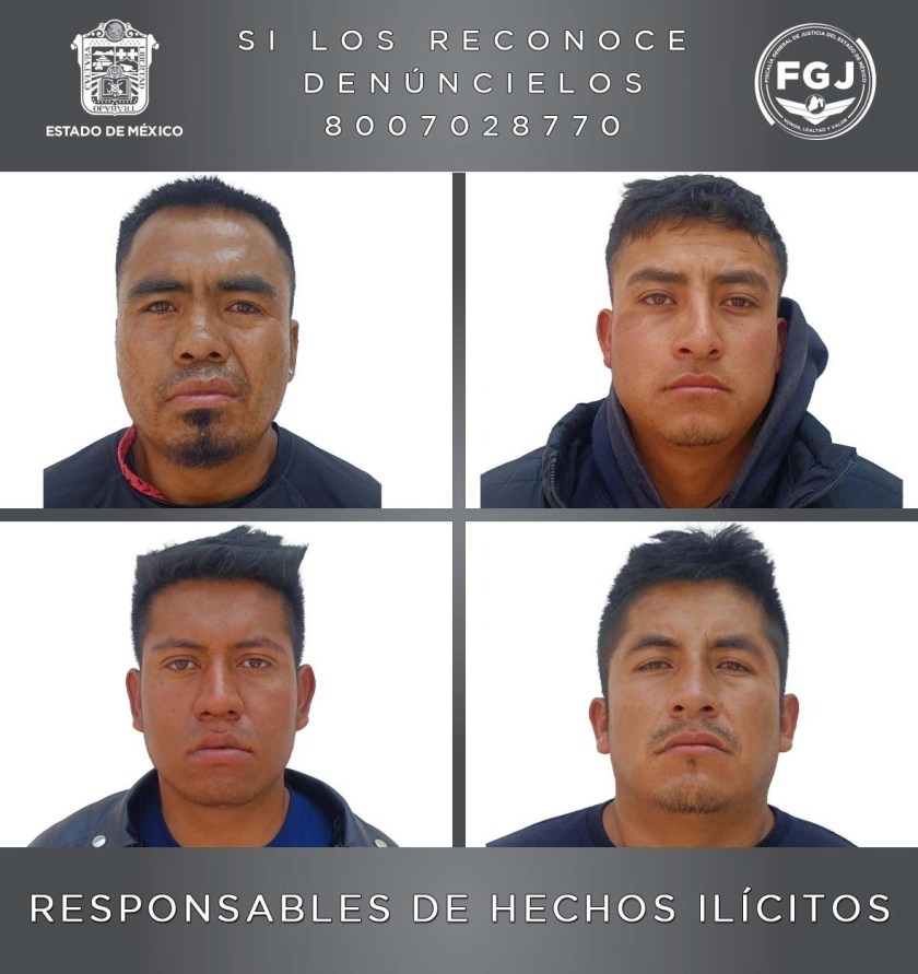 Se trata de Fernando Jerónimo Galindo, Argimiro García Gómez, Víctor Sánchez Beltrán y José Luis Piña Zaragoza, quienes, en el mes de agosto de año 2023, se presentaron en un negocio de chatarrería, ubicado en la comunidad Bucio, en el municipio de Timilpan, en donde exigieron dinero a los empleados a cambio de no causarles daño.