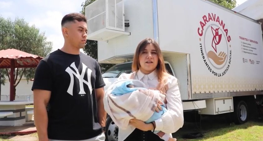 Tecámac, Estado de México.- Ángela y Alejandro se convirtieron en padres por primera vez hace unos días; por ello acudieron a las Caravanas Itinerantes por la Justicia Social, para realizar el trámite gratuito de Registro Oportuno de Nacimiento de su bebé a quien decidieron nombrar Set.