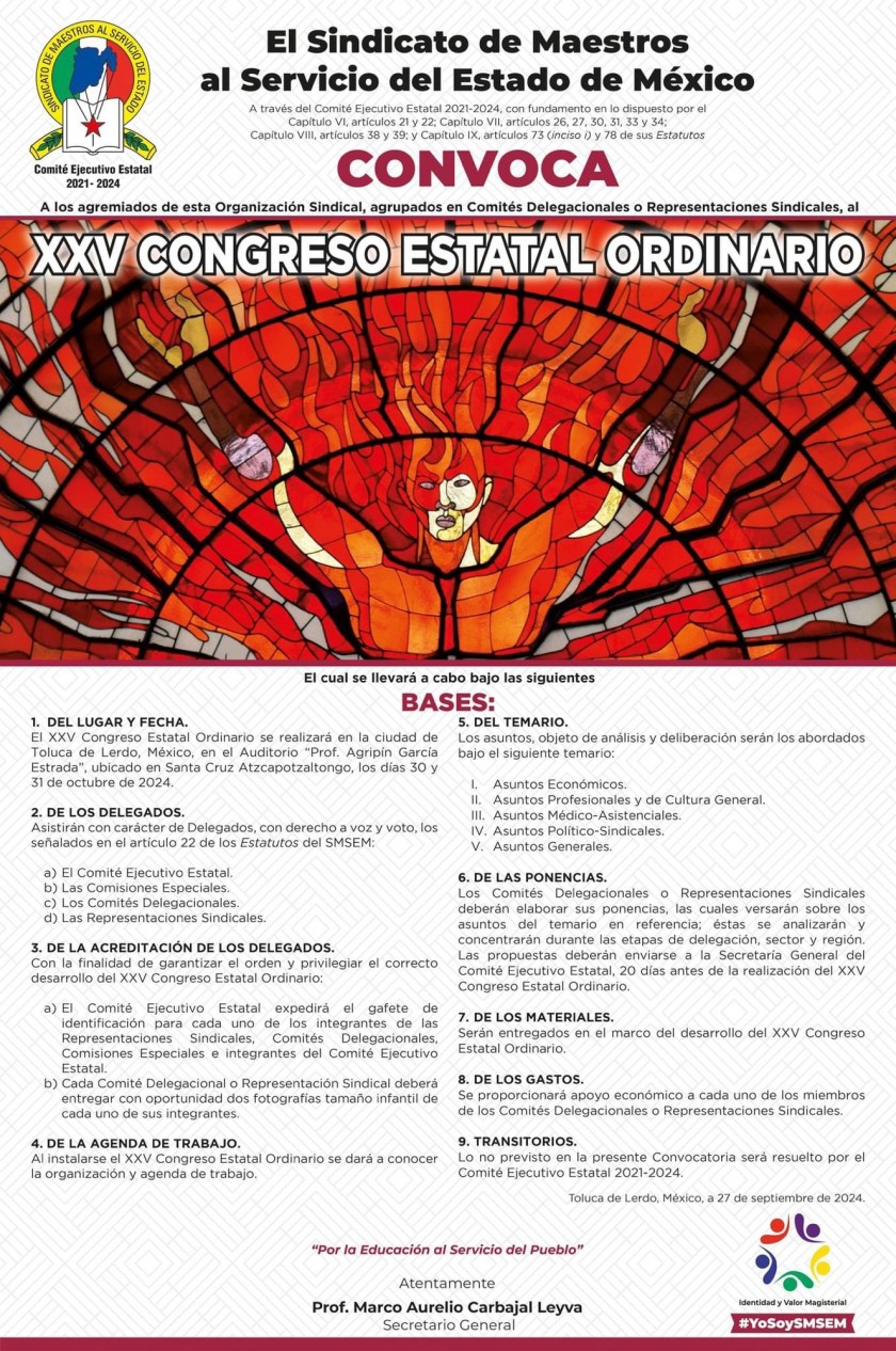 Toluca, Estado de México, 20 octubre 2024.- En la recta final del trienio 2021-2024, el Sindicato de Maestros al Servicio del Estado de México (SMSEM), que dirige Marco Aurelio Carbajal Leyva, Secretario General, enfoca sus esfuerzos en preparar el XXV Congreso Estatal Ordinario, evento que los próximos 30 y 31 de octubre reunirá a más de 4 mil Delegados y Representantes Sindicales de las 13 regiones de la entidad para discutir las demandas y necesidades más apremiantes de la base magisterial.