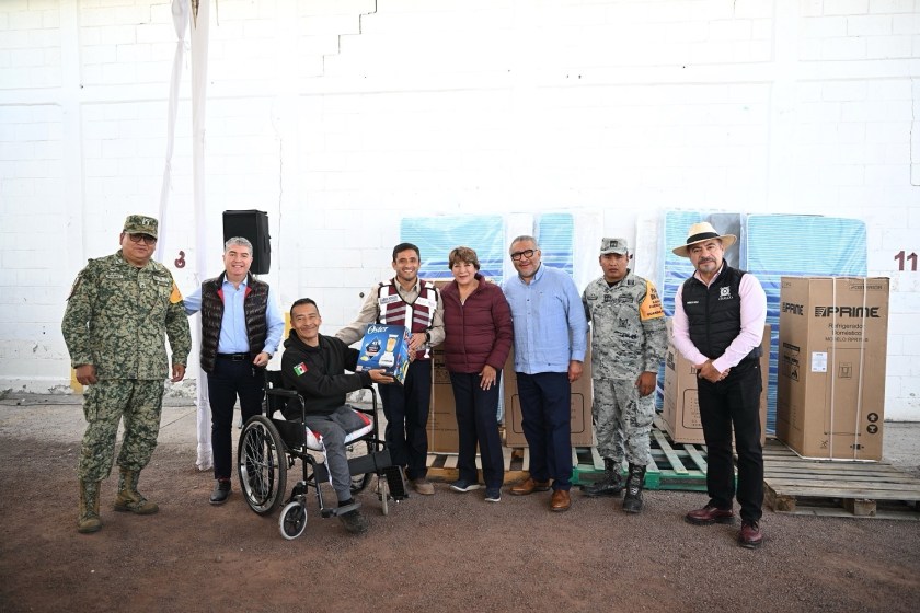 “Hoy en ese proceso de entrega de apoyos, se hace precisamente la entrega de paquetes de enseres domésticos, que incluyen colchón, bases para cama matrimonial e individual, estufa, lavadora, refrigerador y licuadora, para más de mil 800 familias”, afirmó la Gobernadora Delfina Gómez Álvarez.