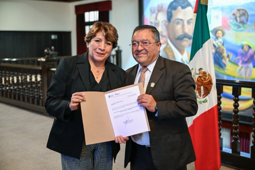 Toluca, Estado de México.- La Gobernadora del Estado de México, Delfina Gómez Álvarez, tomó protesta de ley a Óscar Flores Jiménez como Secretario de Finanzas, y a Victorino Barrios Dávalos como Contralor Interno del ISSEMYM.