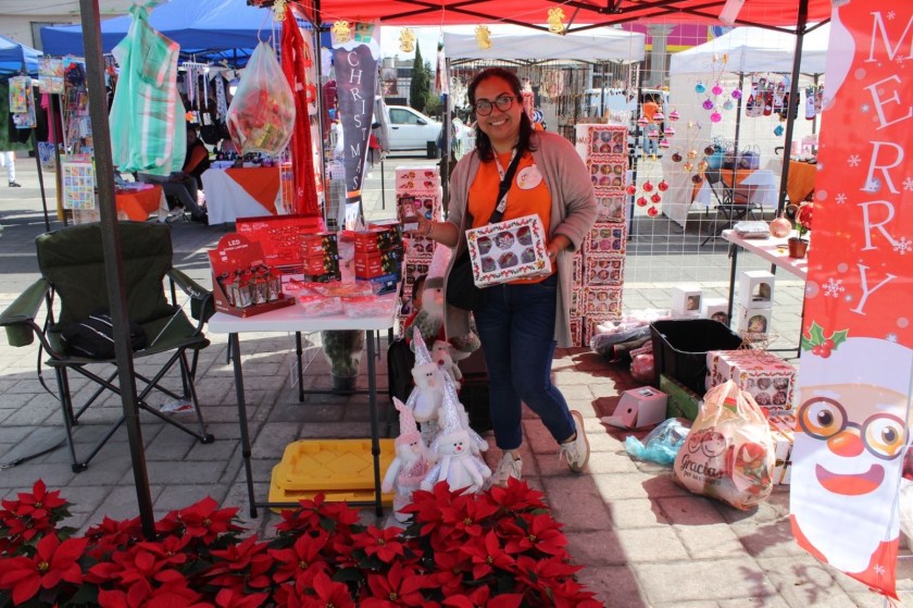 Flores de Nochebuena, piñatas, suéteres navideños, esquimos, tamales, empanadas, marquesitas yucatecas, artesanías y bisutería, son algunos de los productos y alimentos que se pueden encontrar en la cuarta edición del “Mercadito Naranja”, organizado por la Dirección de Atención a la Mujer de Lerma, en coordinación con la Coordinación de Vinculación Industrial perteneciente a la Dirección de Desarrollo Económico, del Ayuntamiento de Lerma.