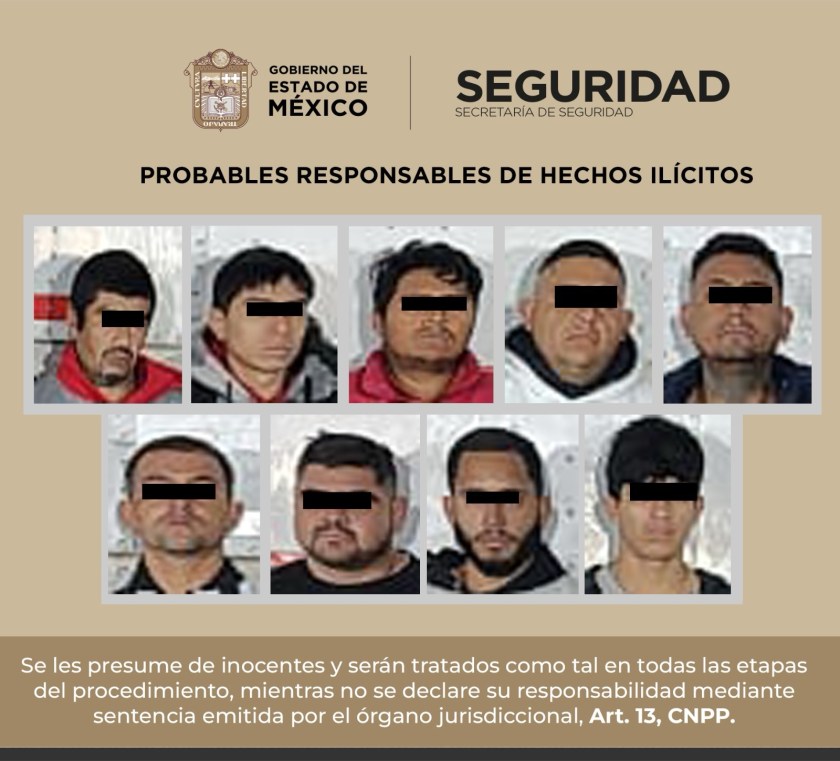 Por lo anterior, se informó sobre el constitutivo del delito y una vez que se leyeron los derechos que la ley otorga, se detuvo a Jonatan “N” y Cristian “N” ambos de 19 años, Noel “N” de 42 años, Valentín “N” de 39 años, Juan “N” de 22 años, Julio “N” de 28 años, Carlos “N” de 41 años, Luis “N” de 23 años, Miguel “N” de 34 años de edad y un menor de edad.