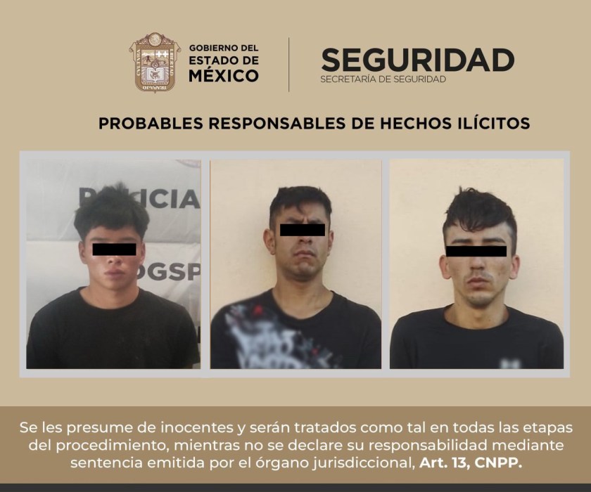 Por los hechos, los uniformados detuvieron a Santiago “N” de 20 años, Arturo “N” de 24 años, Eulices “N” de 27 años y a un menor, posterior a que conocieran los derechos que la ley consagra a su favor, fueron presentados ante la Agencia del Ministerio Público correspondiente, donde se determinará su situación jurídica.