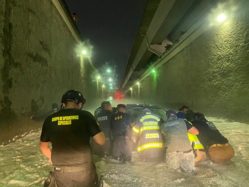 Como parte de las acciones de respuesta, elementos de la Policía Municipal brindaron asistencia directa a personas que quedaron atrapadas en sus vehículos en el bajo puente, ubicado en la intersección de avenida Las Torres y Jesús Carranza, donde liberaron cuatro vehículos y ocho personas.