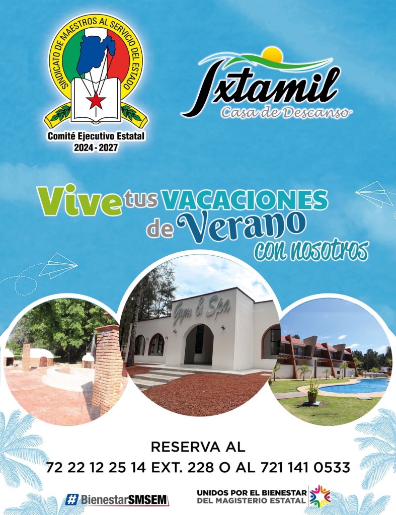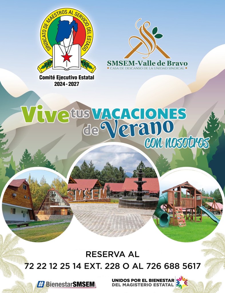 Ubicada en el municipio de Ixtapan de la Sal -sitio turístico por excelencia dentro de la geografía mexiquense- ofrece servicios de calidad a precios accesibles para que en los periodos de receso escolar o los fines de semana, los afiliados al Sindicato de Maestros al Servicio del Estado de México (SMSEM), acompañados de familiares y amigos, se hospeden en alguna de las habitaciones distribuidas en sus cuatro secciones, disfruten de las albercas climatizadas, las aguas termales, el restaurante bufet, además una sesión integral de relajación, purificación o acondicionamiento físico.
