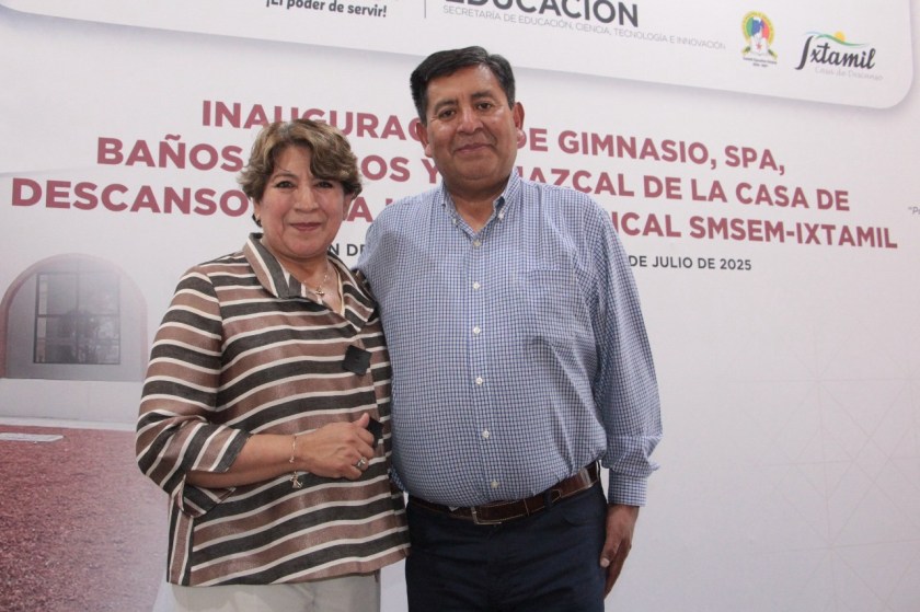 Ixtapan de la Sal, Estado de México, 23 de julio de 2025.- “Ningún gremio tiene un centro vacacional como Ixtamil. Muchísimas felicidades”, afirmó la Gobernadora Delfina Gómez Álvarez, quien en su etapa como docente del Subsistema Educativo Estatal visitó la Casa de Descanso de la Unidad Sindical SMSEM-Ixtamil y ahora, al inaugurar el área de spa, gimnasio, baños turnos y temazcal, reconoció la gestión gremial que la ha transformado en un lugar de recreación y esparcimiento digna de los educadores y sus familias.