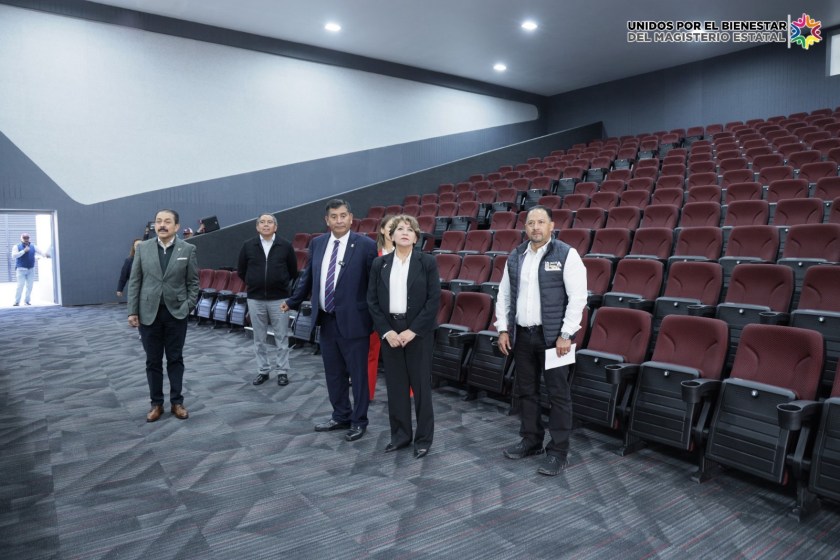 Toluca, Estado de México, 28 de noviembre de 2025.- La gobernadora Delfina Gómez Álvarez inauguró el Edificio de la Unidad Sindical del Sindicato de Maestros al Servicio del Estado de México (SMSEM), acompañada por el Secretario General, Jenaro Martínez Reyes. Tras el recorrido y la develación de placas, la mandataria encabezó en el Auditorio “Prof. Agripín García Estrada” la entrega de becas de la Olimpiada del Conocimiento, apoyos para estudiantes de educación superior, así como vales de obra y mobiliario escolar.