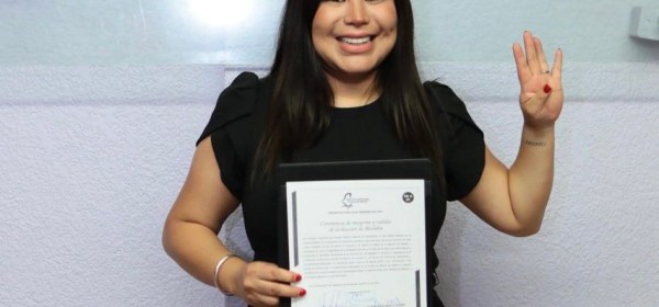 En las instalaciones del Instituto Electoral de la Ciudad de México de la Dirección Distrital 15, Lourdes Paz recibió la constancia de mayoría que la