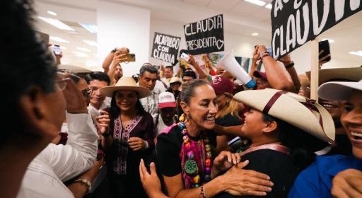 Zihuatanejo, Estado de Guerrero, 01 mayo 2024.- Con el ritmo de la tambora de fondo, flores y pancartas de apoyo, cientos de simpatizantes de Zihuatanejo