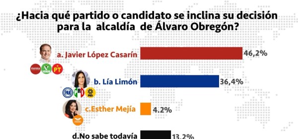 Álvaro Obregón, Ciudad de México, 24 abril 2024.- Con 46.2 por ciento de respuestas favorables, Javier López Casarín, candidato de Morena, PT y el Partido