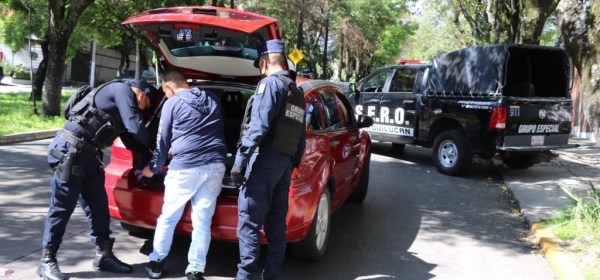 Metepec, Estado de México, 03 enero 2024.- Trabajos de inteligencia derivaron en que elementos de la Secretaría de Seguridad (SS) aseguraran un automóvil posiblemente relacionado
