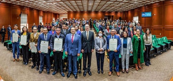 Toluca, Estado de México, 06 diciembre 2023.- El rector de la Universidad Autónoma del Estado de México (UAEMéx), Carlos Eduardo Barrera Díaz, encabezó la ceremonia