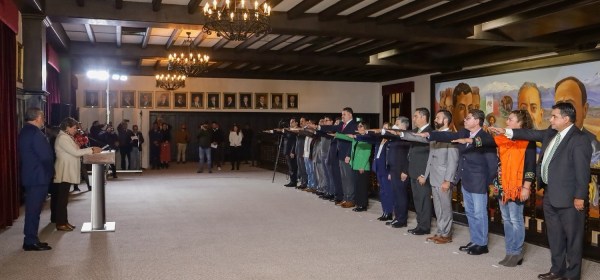 Toluca, Estado de México.- La maestra Delfina Gómez Álvarez, gobernadora del Estado de México, tomó protesta a nuevos servidores públicos de siete secretarías estatales e