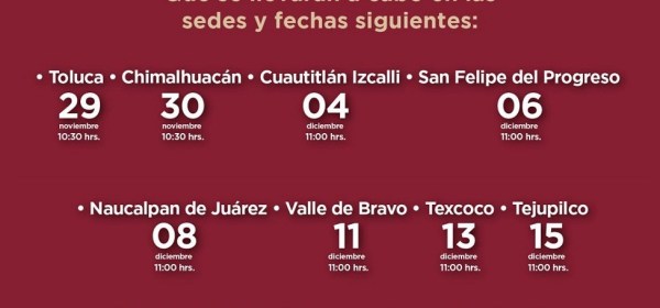 Toluca, Estado de México.- El Gobierno de la maestra Delfina Gómez Álvarez dará inicio a los Foros de Consulta Popular para la elaboración del Plan