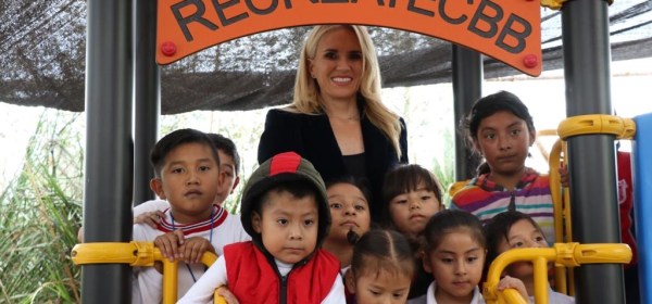 La presidenta municipal, Romina Contreras, entregó tres parques infantiles en distintas localidades del municipio, con el fin de que las niñas y niños tengan más