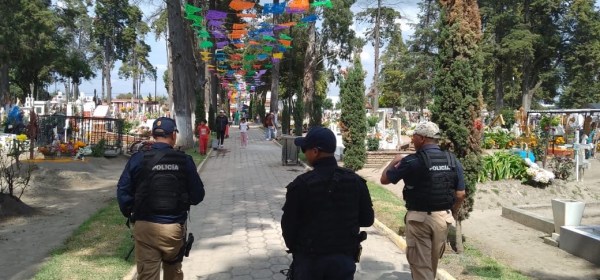 El gobierno de Fernando Flores Fernández implementó un fuerte Operativo de Seguridad Pública en los panteones de esta municipalidad, durante los días miércoles 1 y